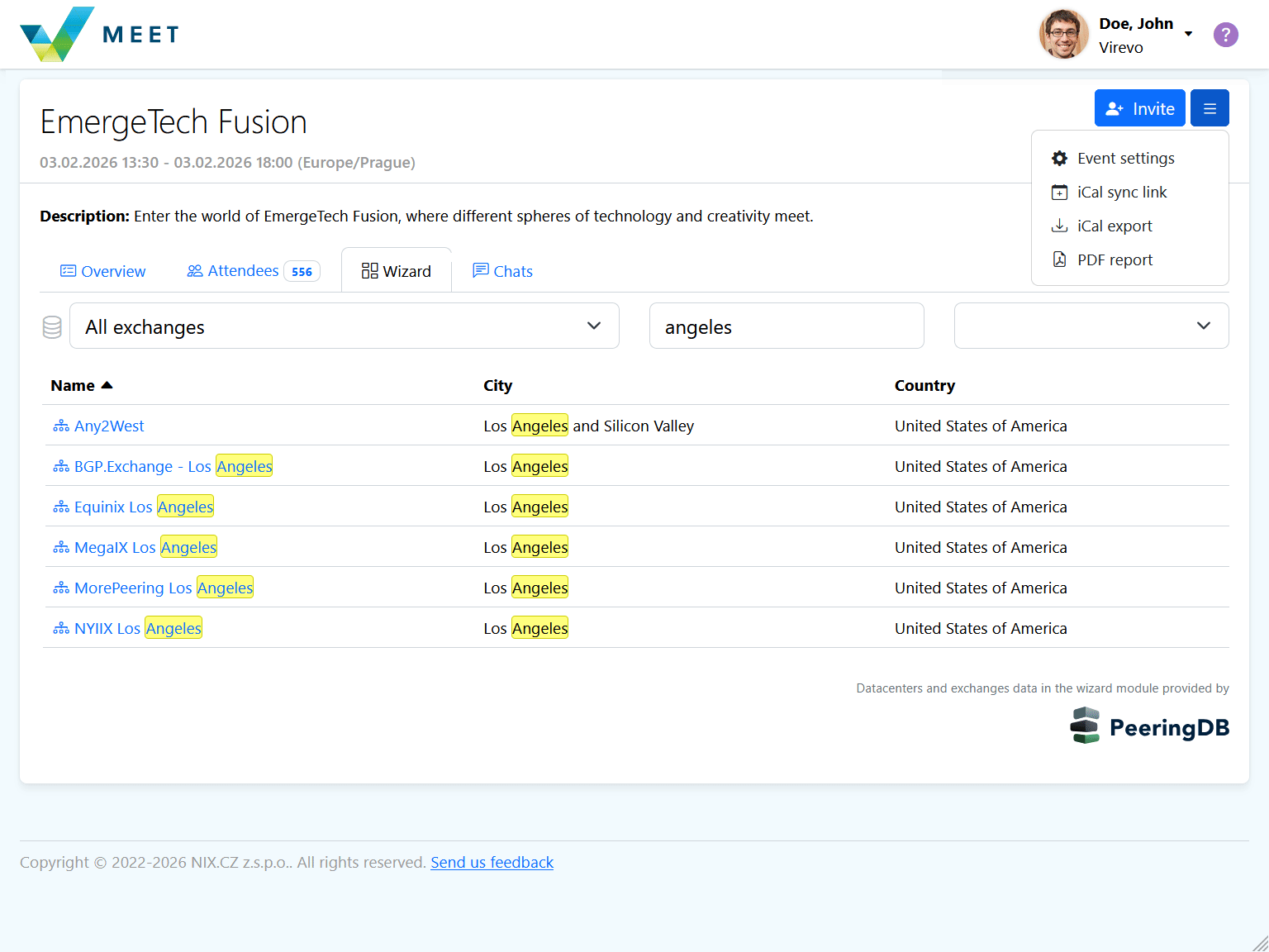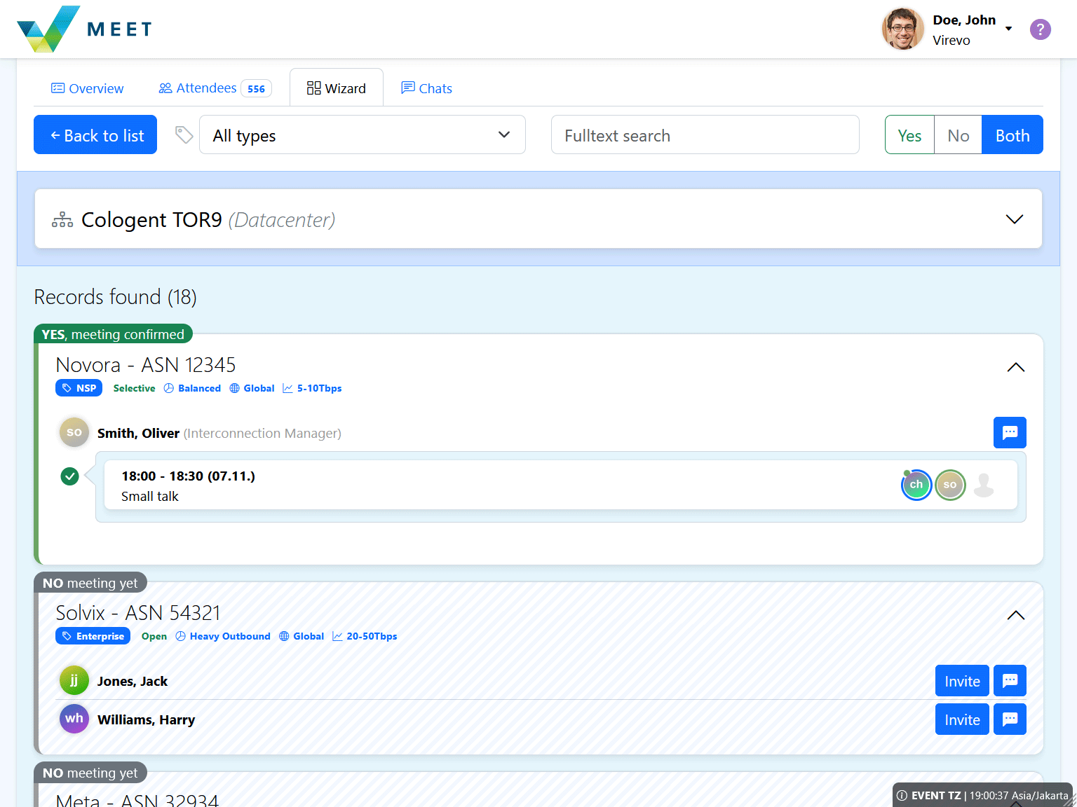 - New Wizard - Connects contacts from PeeringDB with user registrations. Provides an overview of companies and their representatives you plan to meet during the event.