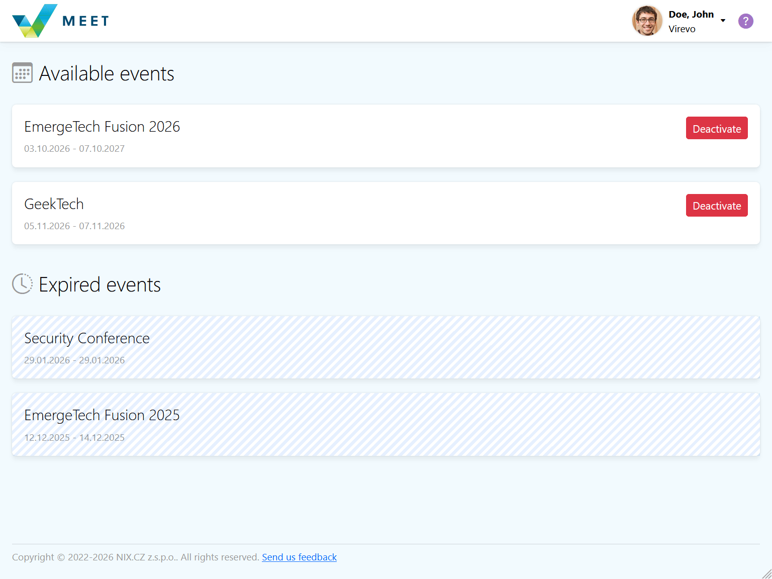 Organizations using the MEET application when organizing their events: